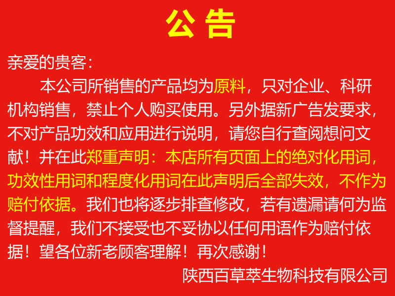 本公司現(xiàn)已與多所科研院緊密合作,公司擁有配套完整的提取、分離、萃取、柱層析、濃縮干燥等設(shè)備和技術(shù),具有豐富的生產(chǎn)天然植物提取物的經(jīng)驗(yàn)和嚴(yán)格的質(zhì)量控制體系。陜西百草萃生物科技有限公司為廣大消費(fèi)著和客戶提供安全、健康、品質(zhì)高、能效強(qiáng)的營(yíng)養(yǎng)健康品,主營(yíng)產(chǎn)品包括:國(guó)食健字鋅硒寶、鋅硒寶、欣寶兒童鋅硒寶、復(fù)合鋅硒片、復(fù)合蛋白鋅、千凈顆粒、蛋白乳鐵片、瑪咖復(fù)合片等、廠家占地五十余畝,廠家建筑面積4000余m2,內(nèi)設(shè)生產(chǎn)車間、質(zhì)量控制室、產(chǎn)品檢測(cè)中心、陰涼倉(cāng)庫(kù)、..